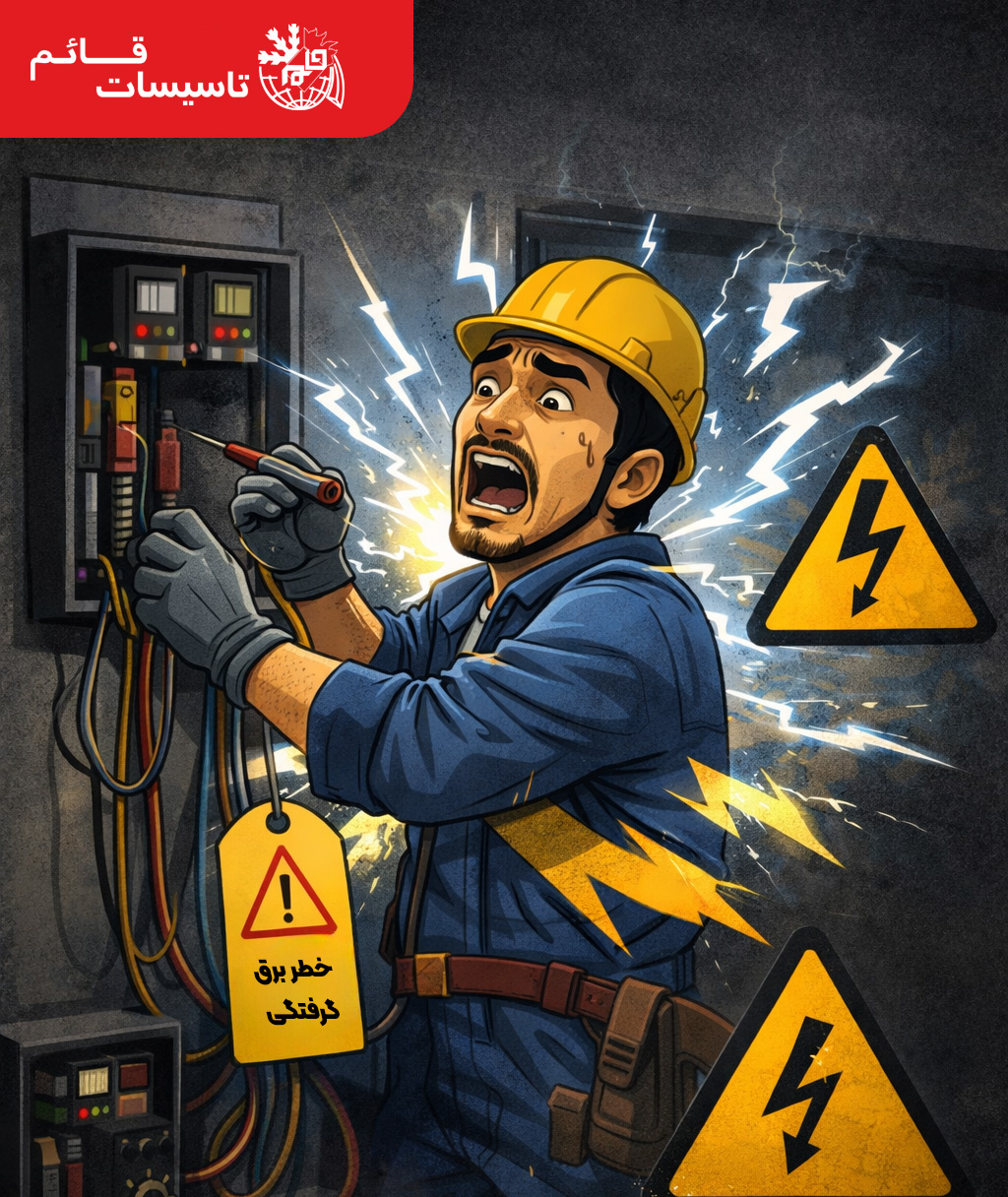 راه حل: همیشه از قطع کامل جریان و نصب برچسب هشدار «درحال تعمیر» روی کلید، اطمینان حاصل کنید. از فازمتر و تجهیزات معتبر (دارای نشان IEC یا CE) استفاده کنید.